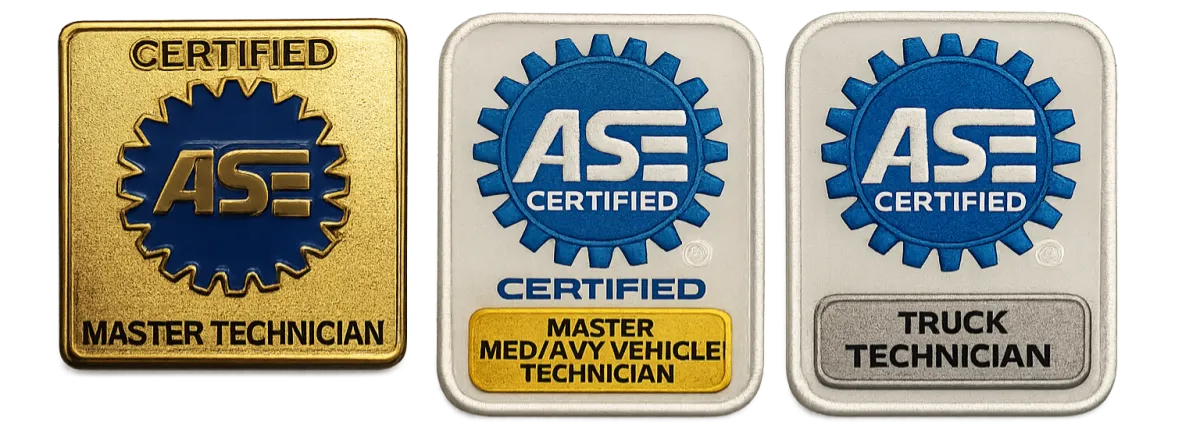 "Certified ASE Master Technician on site Free diagnostics Warranty Repairs"